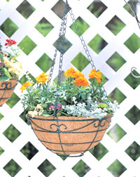 アプローチなどを多彩に飾ることの出来るワイヤー製の吊り鉢です。インナーには天然ヤシを使用しているので、通気性・排水性に優れており、自由な根の発育を促進します。