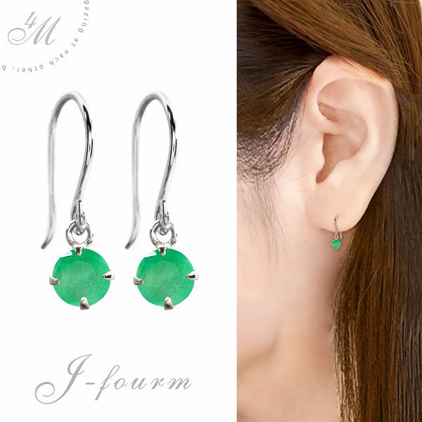 エメラルド ピアス 送料無料 Pt900プラチナ 3mm ラウンド シンプルフック 両耳ペア