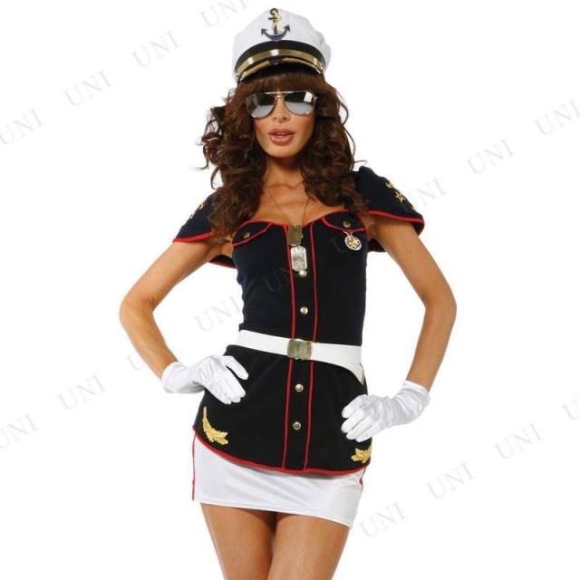 | 商品説明 | 女性用の船長/艦長コスチューム。トップス、スカート、帽子、サングラス、ベルト、グローブのセットです |