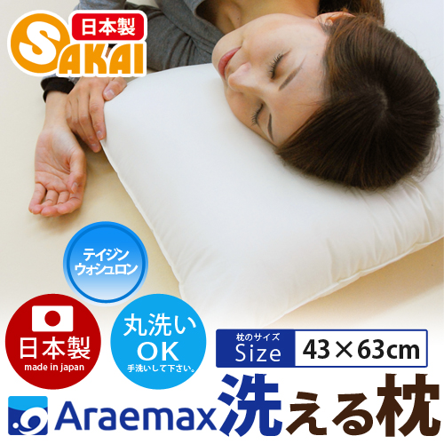 帝人 ウォシュロン(R)中綿使用 洗える枕 43×63cm