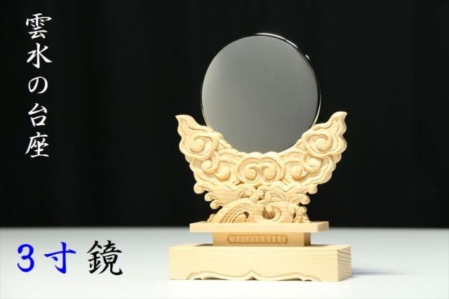 特上 雲水彫 神鏡■ 3寸/大■職人手彫り■モダン神棚 ご神体に