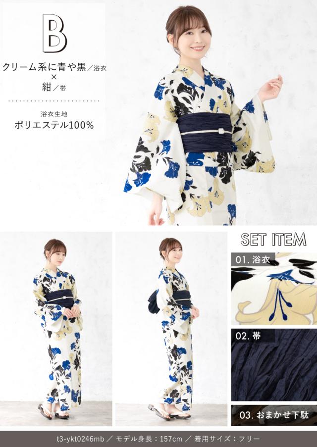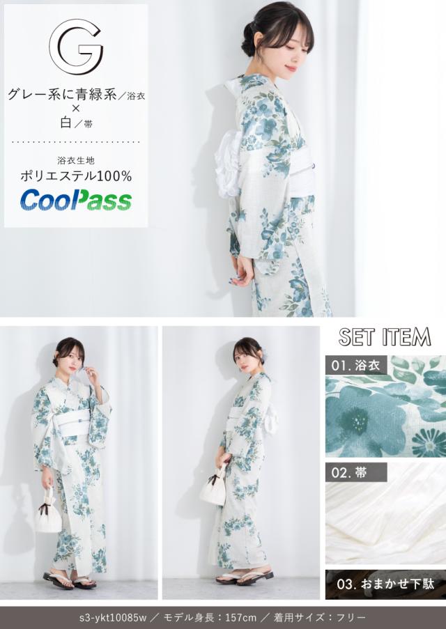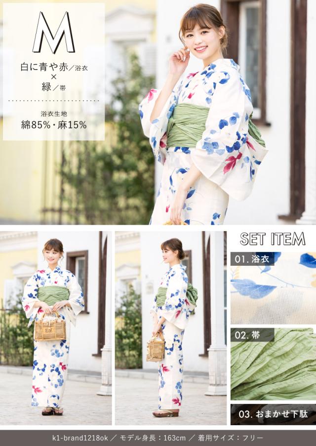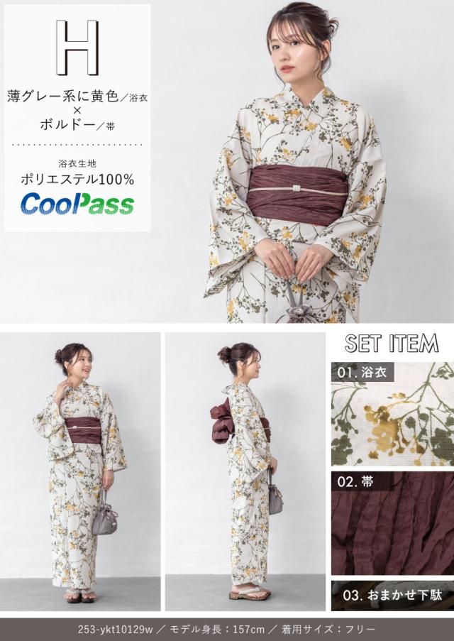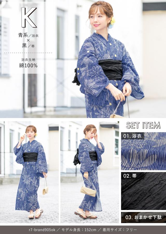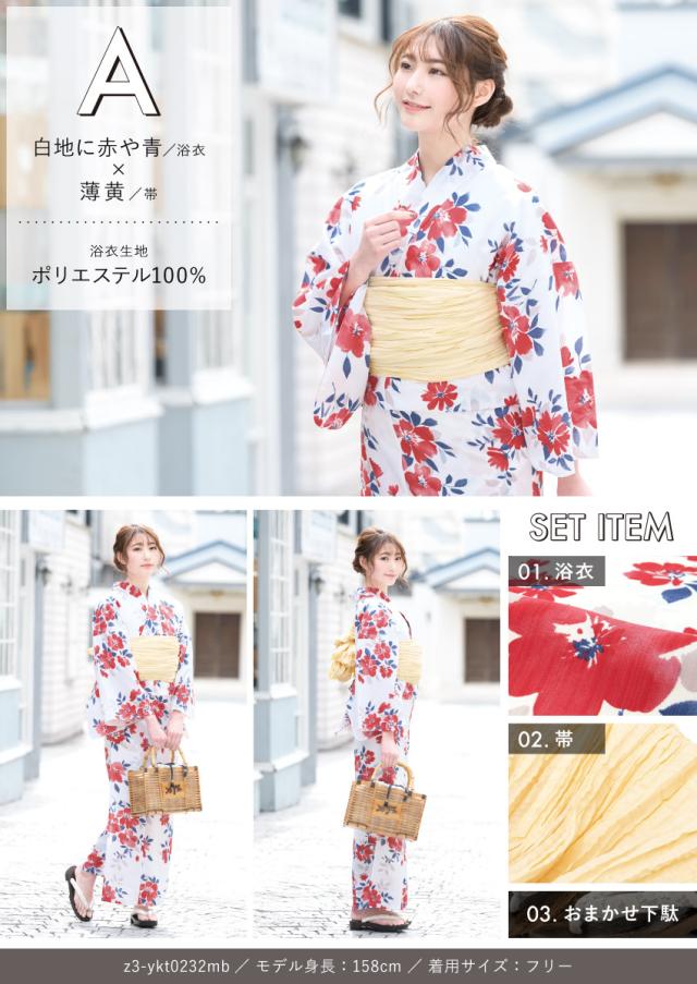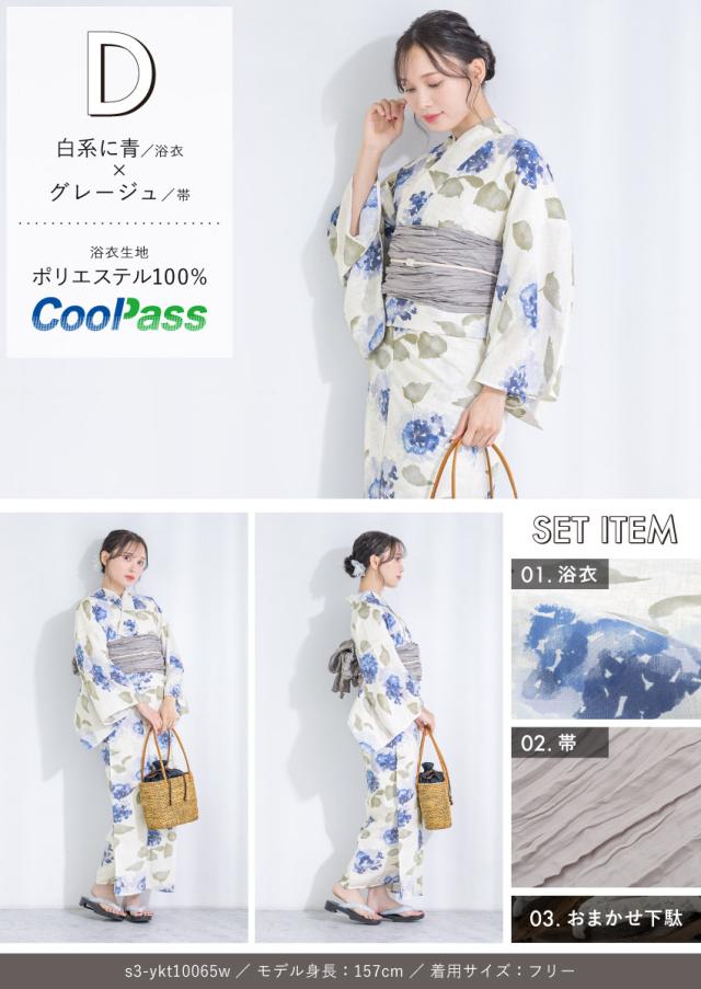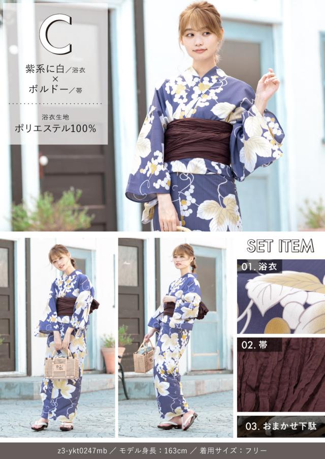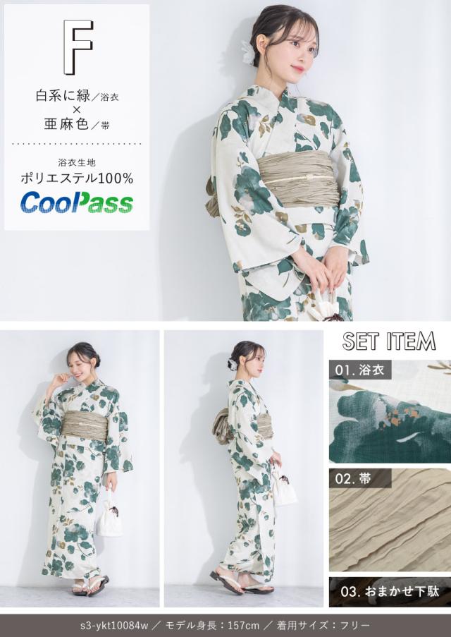 浴衣セット プチプラ 浴衣 3点セット レディース 帯 下駄 兵児帯 セット くすみカラー 椿 百合 唐草 朝顔 金魚 ストライプ 花 女性 大人 中学生 高校生 おしゃれ 人気 S フリー 翌日配送 創美苑 送料無料