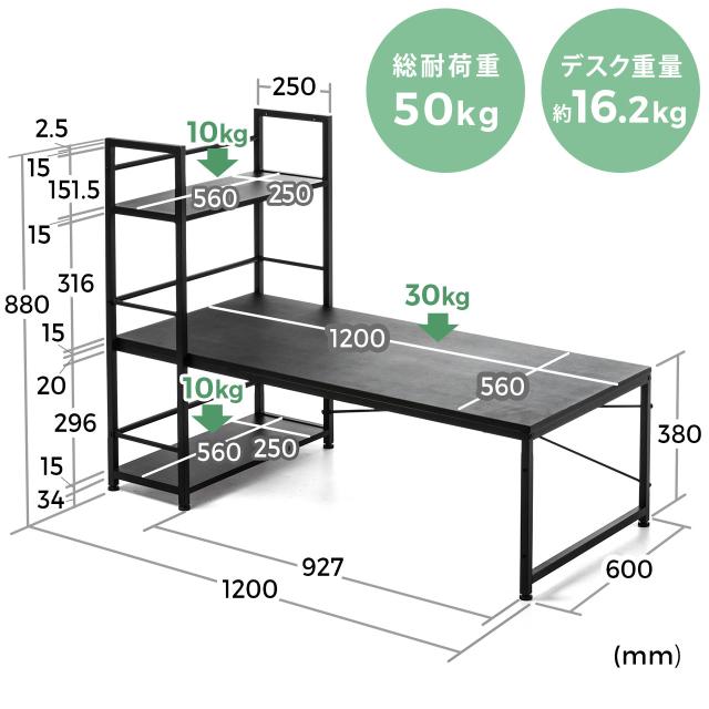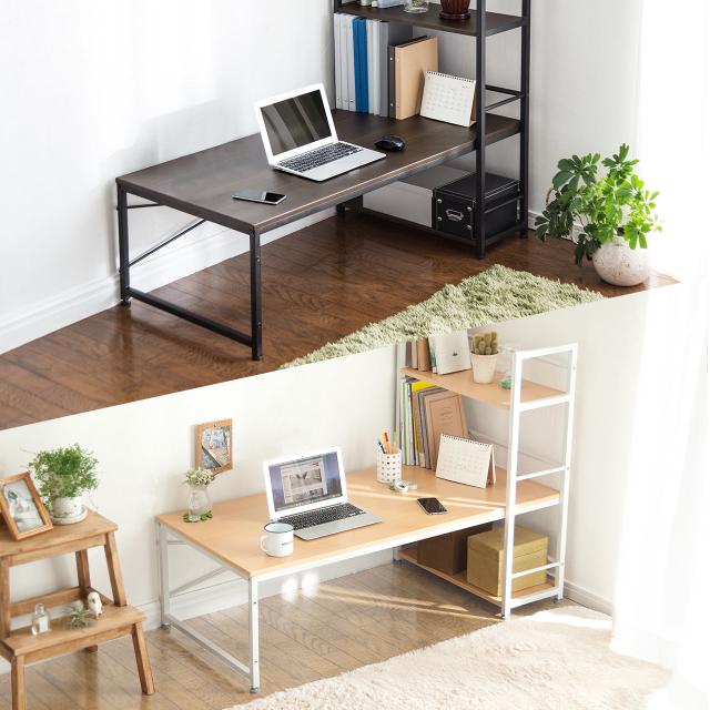 ラック付き ローデスク 幅120cm 左右入れ替えられる収納棚 パソコンデスク ロータイプ 机 [100-DESKH023]