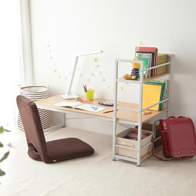 ●床に座りながら作業できるローデスクです。●省スペース性に優れるシェルフ一体型です。