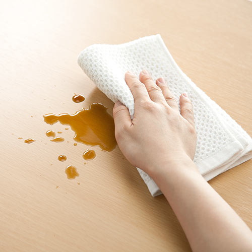 ●耐久性に優れ、汚れを弾く塩ビシート張りの天板です。