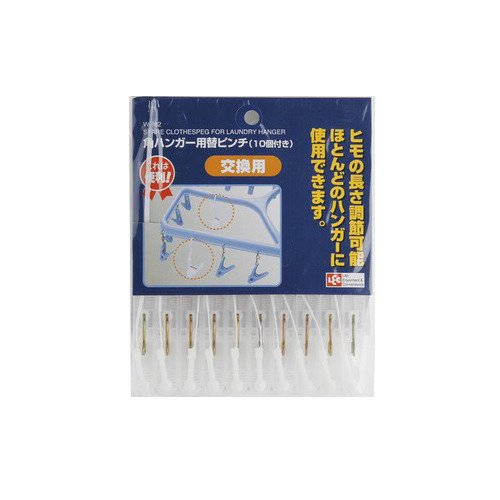 「レック 角ハンガー用替えピンチ W-182 10個入」は、角ハンガー用の替ピンチです。ヒモの長さが調節できるので、ほとんどの角ハンガーに使用できます。