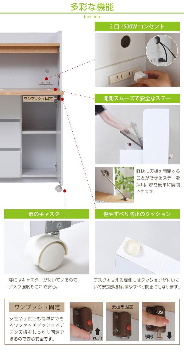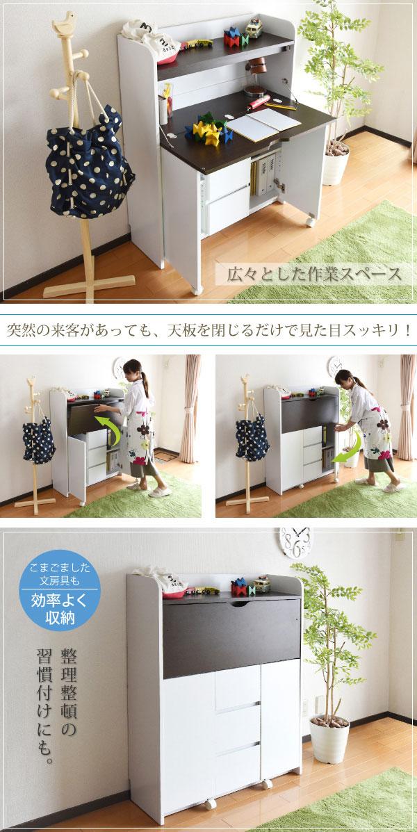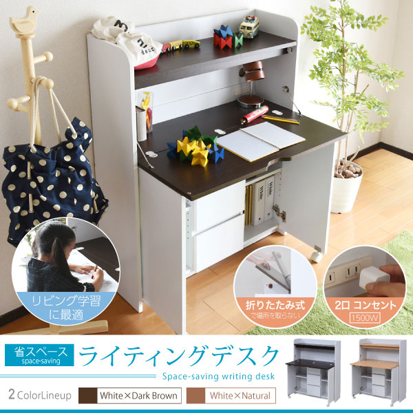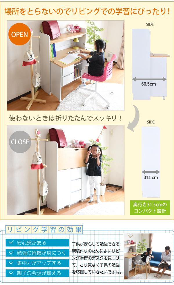 パソコン 折りたたみデスク 折りたたみ式デスク 折りたたみ机 薄型デスク スリムデスク 奥行30 奥行40 PCデスク パソコンデスク 子供デスク キッズデスク ジュニアデスク リビング学習 デスク 机 ライティング机 学習つくえ PC机 パソコン机 子供机 簡易デスク 折りたたみ ホワイト 白 ナチュラル折り畳み式天板で、使いたいときだけ広げて、使わない時はすっきり畳んでおける、ライティングデスク。しかも薄型だからリビングに最適。リビングでの子供の学習から、ママやパパのパソコンデスクとしても。上部にはランドセルなどを置けるオープン収納部、下部には扉収納部と3段の引出しで、収納力にも自信あり。コンセント、配線コード穴もあるので、PC、周辺機器の設置もOKです。