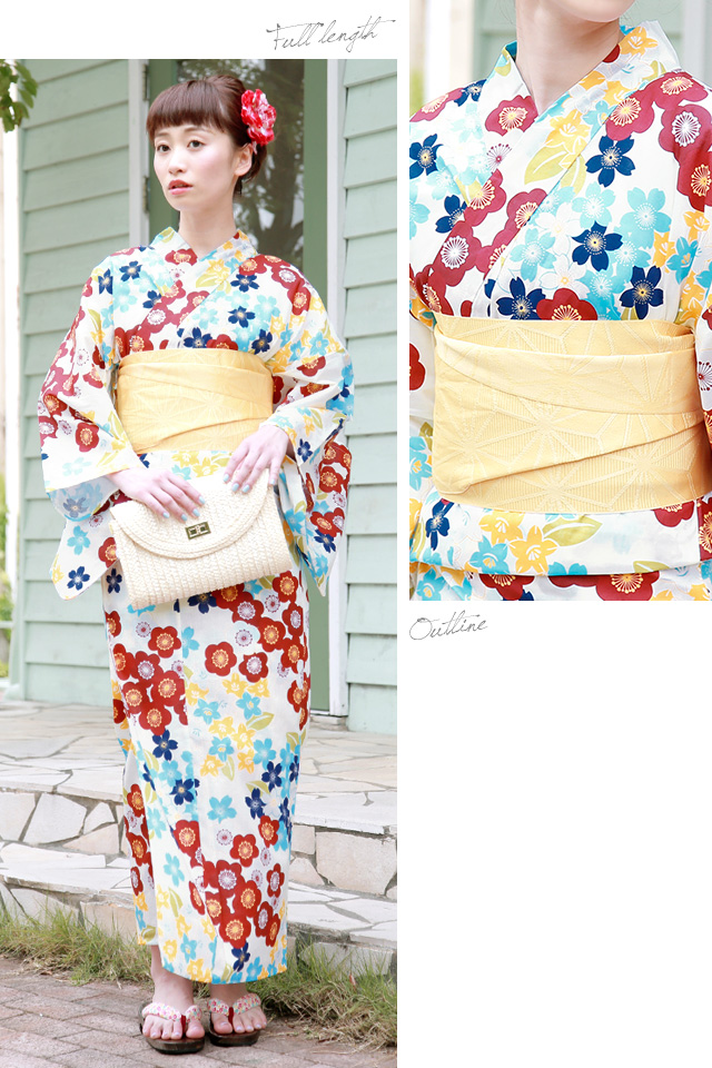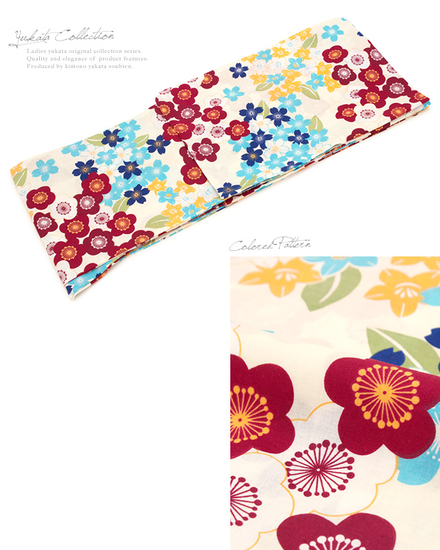 浴衣セット レディース レトロ 浴衣セット 大人 3点セット 白系 ホワイト カラフル 黄色 桜 梅 花 綿 モダン 半幅帯 女性