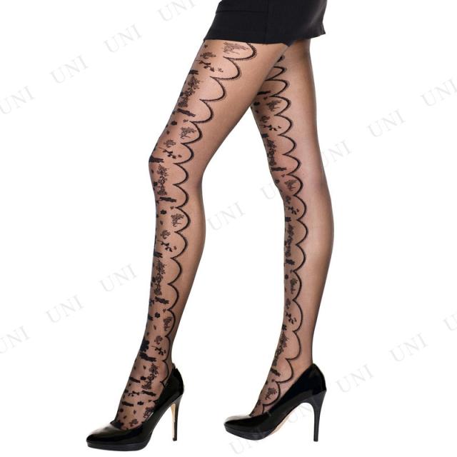 コスプレ 仮装 パンティストッキング ロマンチックフローラル Music Legs 靴下 タイツ パンスト レギンス フリーサイズ フローラル柄 スカラップレース