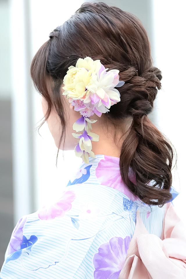 浴衣や夏着物を美しく彩る、花の髪飾りです。
