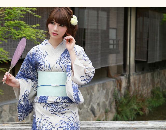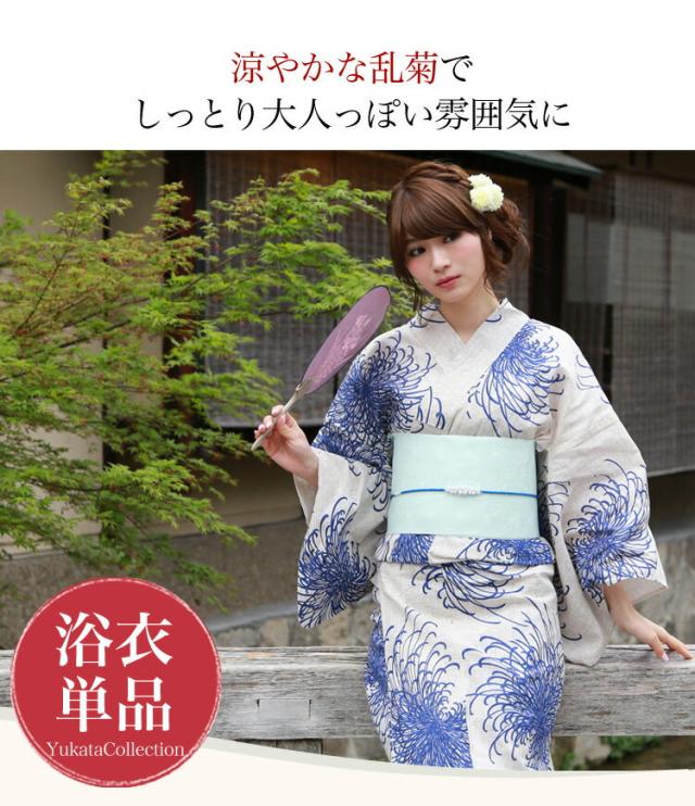 浴衣単品「生成り地に紺乱菊」 浴衣のみ 大人 レトロ レディース
