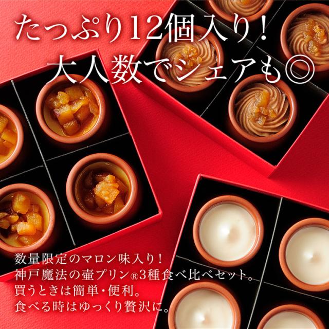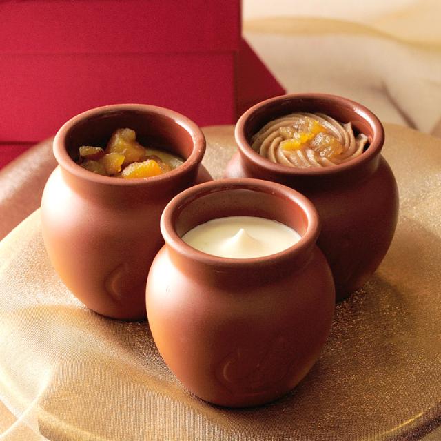 可愛い素焼きの壷に入ったとろとろプリンは、まさにすくって食べるような魔法の食感!モンドセレクションで最高金賞受賞のとろける濃厚カスタードプリン、蜜漬けのお芋をトッピングしたとろ〜りなめらかなお芋の壷プリン、美味しさUPの秋限定マロンの壷プリンが入った心もとろける特別セット!