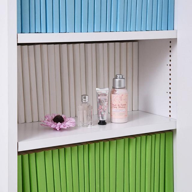 棚の高さを1cmごとに調節できる可動棚により、スペースを最大限使えて、無駄なく沢山の本を収納していただけます。棚の数も多く付属しているので幅広いサイズの物を置くことが可能です。空いたスペースには小物類の収納もできます。