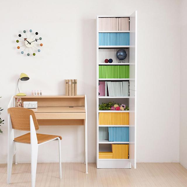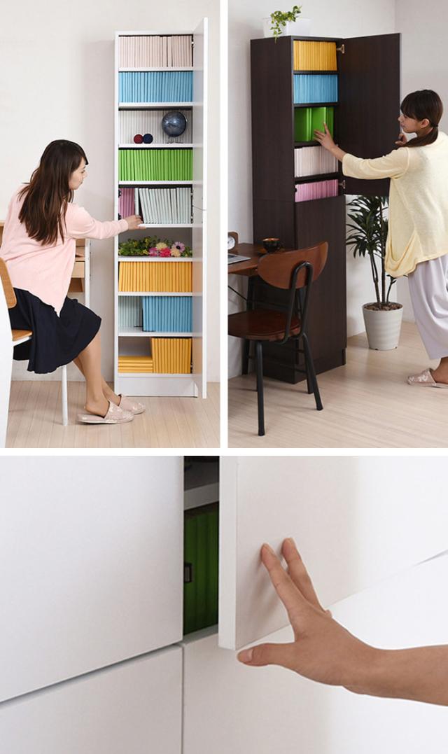 本棚 扉付き 幅41.5cm 高さ180.5cm 全棚可動 ( ブックシェルフ 1cmピッチ 可動棚 ラック 大容量 収納 家具 壁面収納 シェルフ 深型 スリム ダークブラウン ホワイト ライトブラウン )