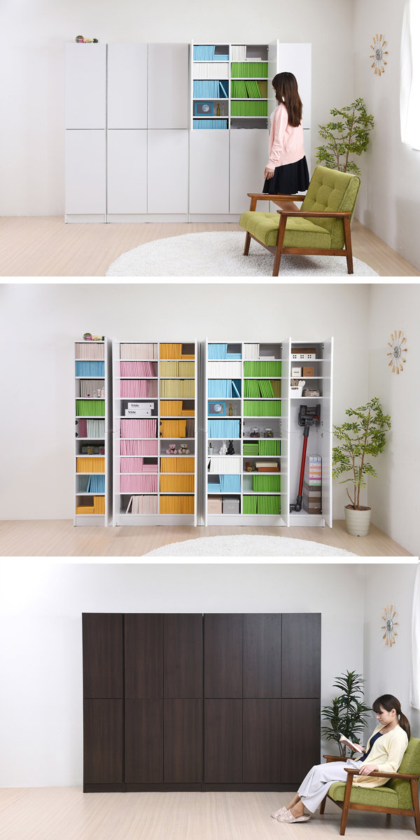 扉付きなので、見た目もスッキリとスマートな空間になります。来客時などは扉を閉めておけば、目隠し扉として使うことができ便利です。書籍や雑誌以外に日用品や食料品の収納にもお使いいただけます。