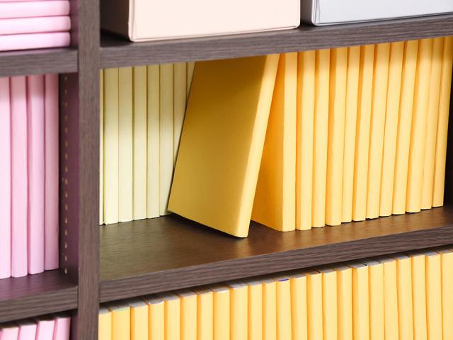 1cm間隔で棚板が設置できるスリムなのに大容量収納の本棚