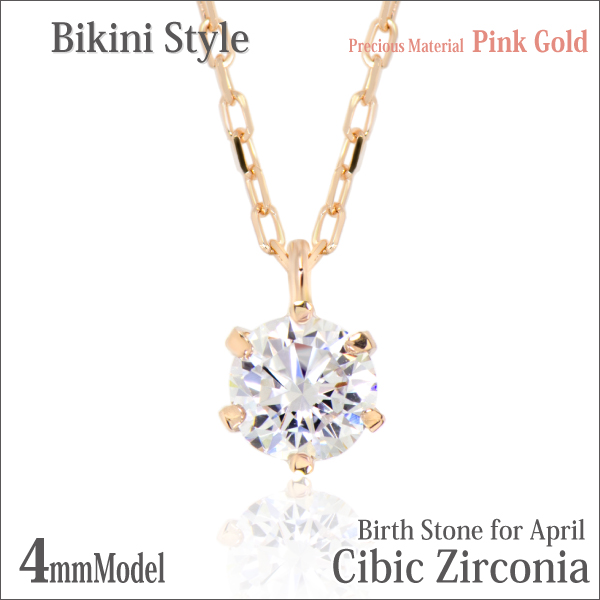 送料無料 K10 ピンクゴールド 5A キュービックジルコニア 4mm ビキニスタイル ペンダント ネックレス チェーン 付 宅配便