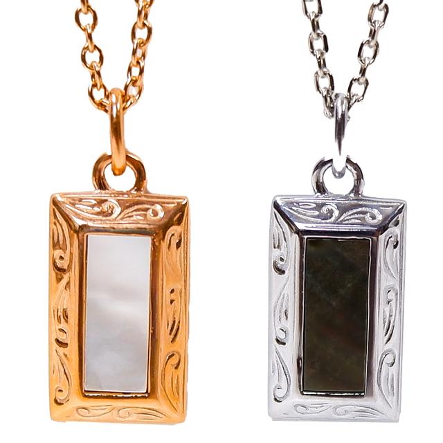 送料無料 刻印可能 ハワイアンジュエリー プレートネックレス ピンクゴールド ステンレス シェル ラッピング対応 アレルギー対応