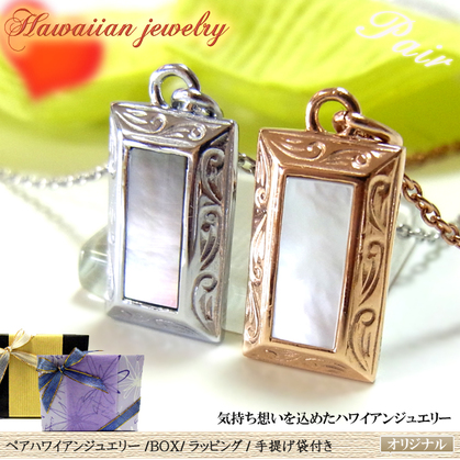 送料無料 刻印無料 ペアハワイアンジュエリー プレート ペアネックレス シェル ステンレス ピンクゴールド BOX付き ラッピング対応 アレルギー対応