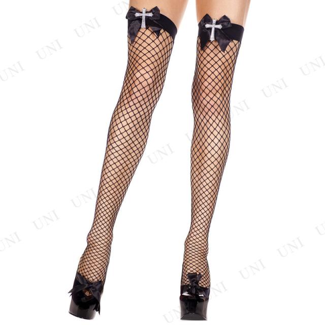 | 商品説明 | トップにリボンと十字架が付属した、目が少し大きめの網タイツ風サイハイストッキングです。お手持ちの服装と合わせたり、コスチュームと合わせてのご使用もおすすめです |
