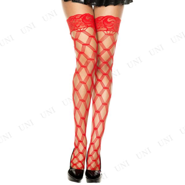 コスプレ 仮装 レーストップ マルチネットサイハイストッキング レッド Music Legs 靴下 タイツ ニーハイ フリーサイズ 網目デザイン