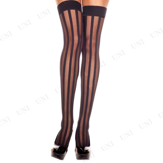 コスプレ 仮装 シアー&オパーク ストライプサイハイストッキング ブラック Music Legs 靴下 タイツ ニーハイ フリーサイズ 透け感 ストライプ柄