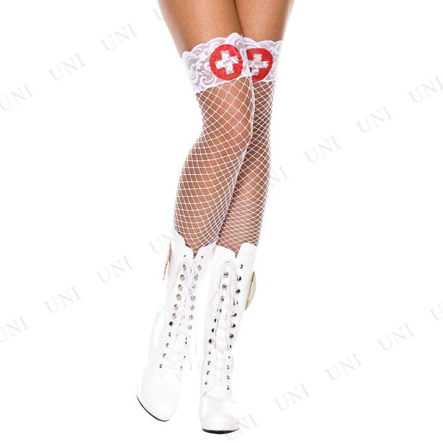 コスプレ 仮装 レーストップサイハイネットストッキング ナースコスプレ Music Legs コスプレ小物 靴下 フリーサイズ 女性 網タイツ風 十字マーク入り
