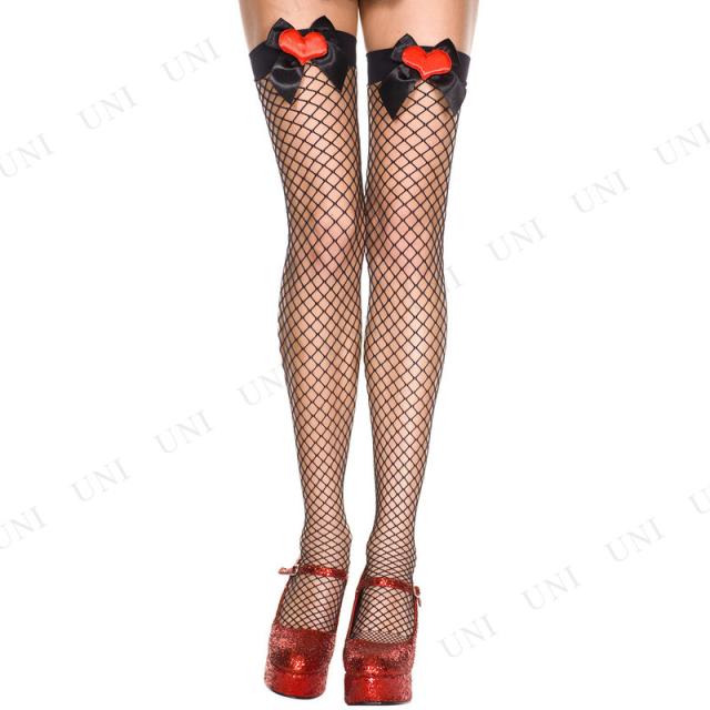コスプレ 仮装 ハートリボン付きサイハイネットストッキング Music Legs 靴下 タイツ ニーハイ フリーサイズ 網タイツ風