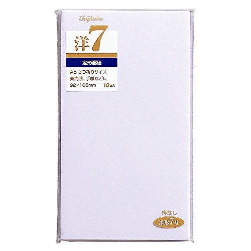 | 洋7サイズの無地・横型封筒です。A5サイズの用紙を3つ折りにして入れるのに丁度良い大きさです。10枚入り。。。。サイズ:縦=164mm 横=91mm 。商品色傾向:白。。表紙パターン:無地。 |