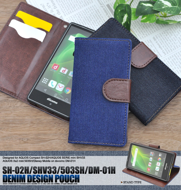 AQUOS Xx2 mini 503SH/Disney Mobile on docomo DM-01H用 デニムデザインスタンドケースポーチ(ジーンズデザイン)