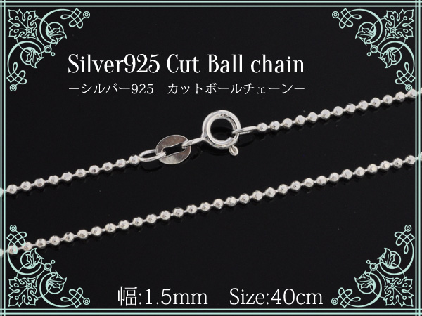 40cm カットボ−ルチェ−ン Silver925 幅:1.5mm シンプルチェーン シルバーチェーン ネックレス
