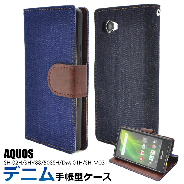 AQUOS Compact SH-02H AQUOS SERIE mini SHV33 AQUOS Xx2 mini 503SH DM-01H用 デニムデザインケースポーチ 手帳型 カバー