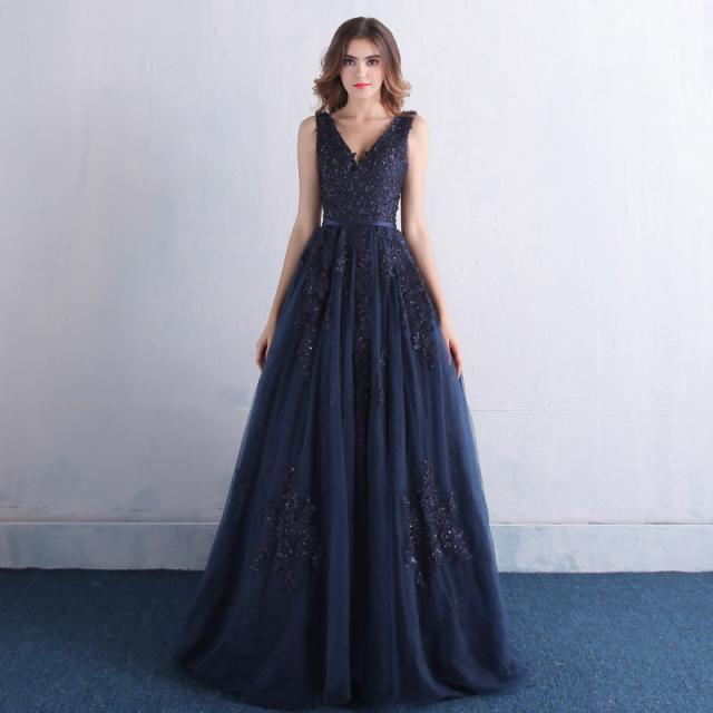 最新作 パーティドレス ロングドレス ワンピ チュールスカート ナイトドレス ネイビー 二次会 発表会 演奏会 オーダーサイズ可 D104