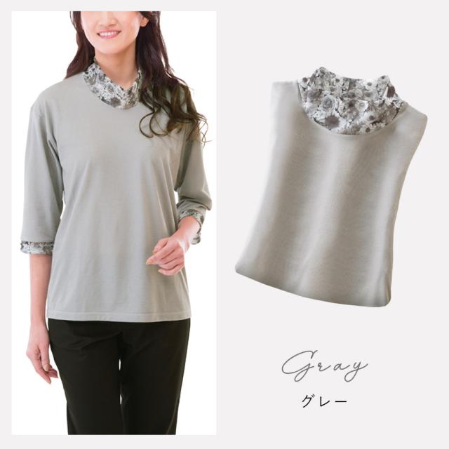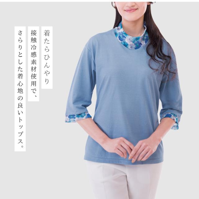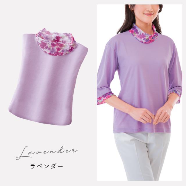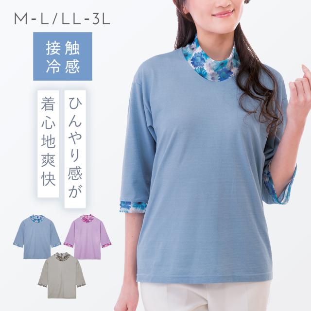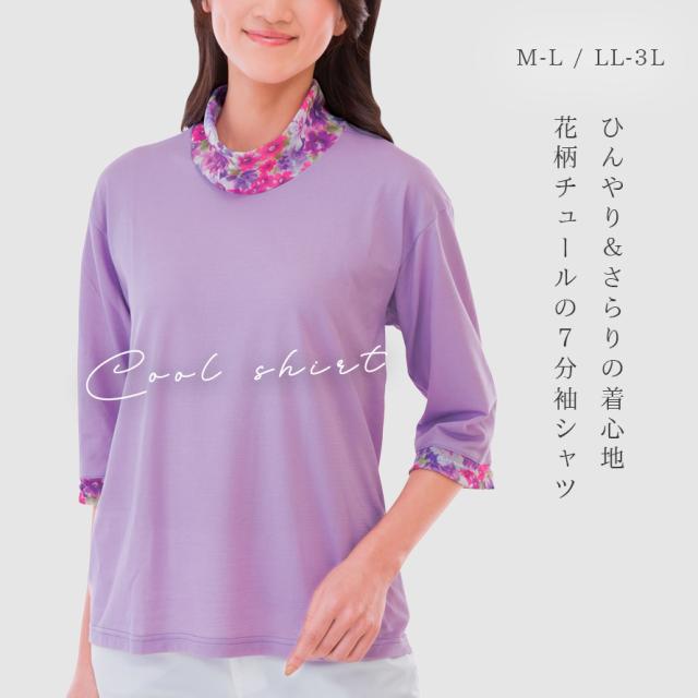接触冷感 tシャツ レディース,吸汗速乾 tシャツ レディース,tシャツ 冷感 レディース,tシャツ,Tシャツ,7分袖,七分袖,二の腕カバー,ハイネック,花柄,チュール,ラベンダー,パープル,紫,ブルー,青,グレー,日本製,トップス,カットソー,春,夏,春夏,夏用,吸汗速乾,吸汗,速乾,乾きやすい,接触冷感,冷感,冷たい,ひんやり,クール,涼しい,暑さ対策,暑い季節,さらさら,サラサラ,サラっと,さらっとしている,さらり,サラリ,爽やか,さわやか,べたつかない,ベタつかない,大人,レディース,女性,お年寄り,高齢者,シニア,10代,20代,30代,40代,50代,60代,70代,80代,おしゃれ,お洒落,オシャレ,かわいい,可愛い,シンプル,M,L,LL,3L,大きいサイズ,大きめ,ゆったり,カジュアル,きれいめ,体型カバー,コーディネート,着回し,細見え,着痩せ,着心地,