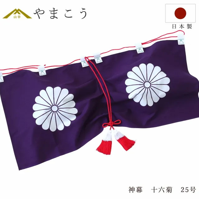 送料無料 神幕 十六菊 紋章 25号 京友禅の風合い 高級 神前幕 (約cm)横幅 75 垂れ 35 神棚用 地蔵
