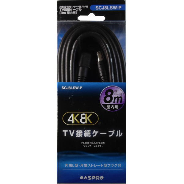 マスプロ テレビ接続ケーブル(4C) 【8m】 片端L型プラグ⇔片端ストレート型プラグ F型入力端子(F型プッシュ式プラグ) SCJ8LSW-P返品種別A
