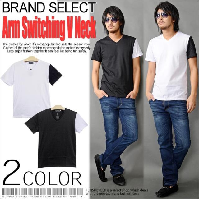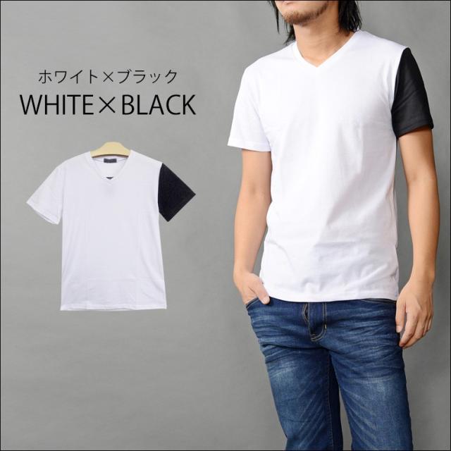 【閉店セール】アシメカラー無地メンズ半袖Tシャツメンズ Vネック 無地 ストレッチ 58607 メンズファッション キレイメ シンプル メンズカジュアル ネック メンズ ストレッチ アメカジ クールカジュアル プリント おしゃれ