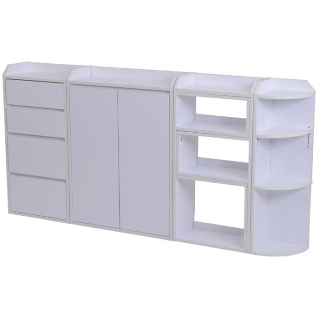 カウンター下収納 4点セット 薄型 ミニ キャビネット 両扉 付き チェスト 伸縮ラック コーナーラック 幅162 〜 194 奥行22 高さ80 突っ張り金具付 組み合わせ ホワイト