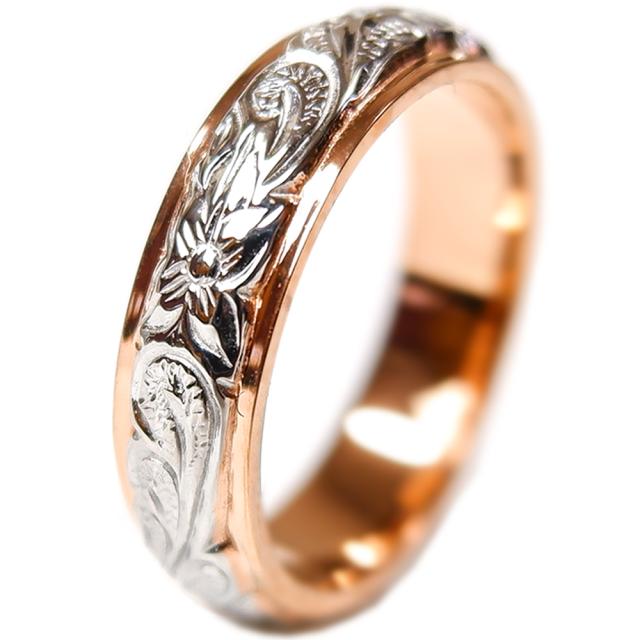送料無料 刻印可能 ハワイアンジュエリー リング 指輪 レディース ピンクゴールド スチールシルバー ステンレス ラッピング対応 アレルギー対応 ペアリング セットにも