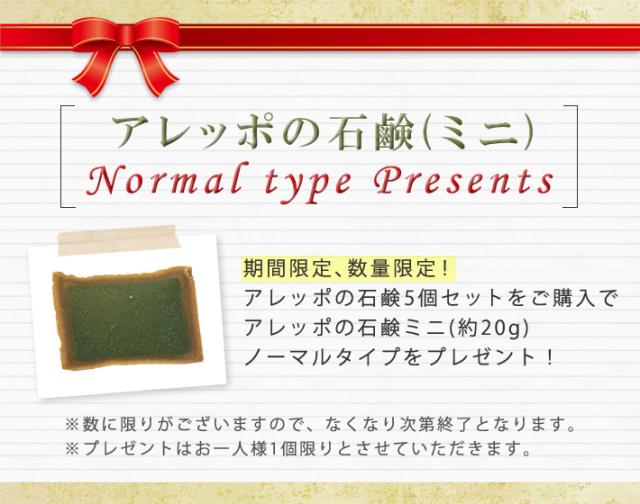 ご購入で、アレッポの石鹸ノーマルタイプ(約20g)をプレゼント!