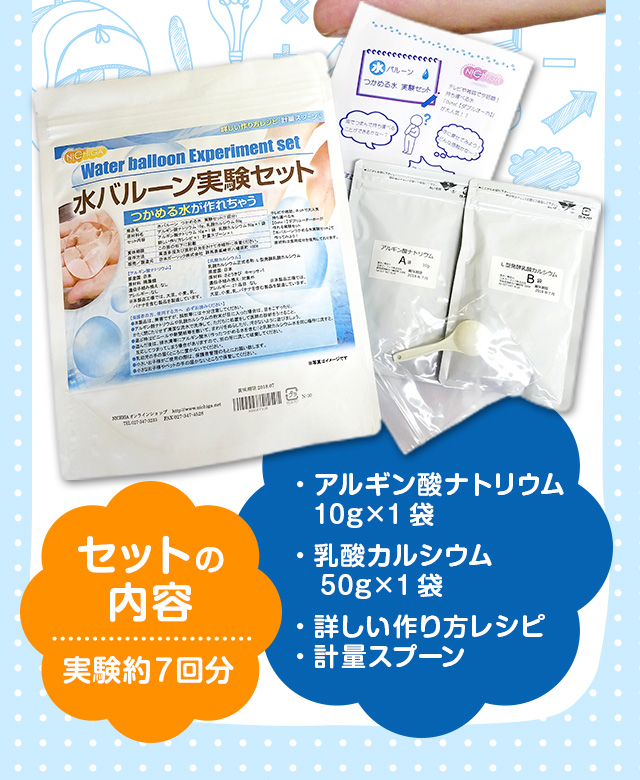 水バルーン実験セット(7回分) アルギン酸ナトリウム10g+乳酸カルシウム50gセット 【メール便専用品】【送料無料】[04] NICHIGA(ニチガ)