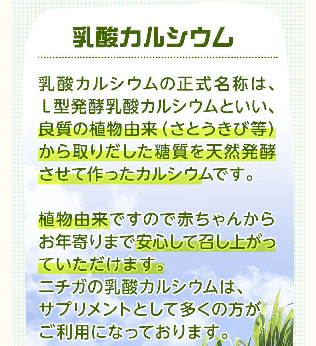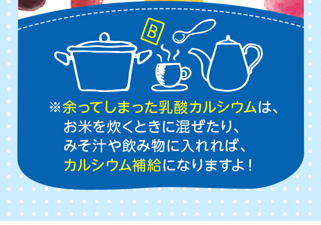 | 内容量 | アルギン酸ナトリウム 10g、 乳酸カルシウム 50g |
