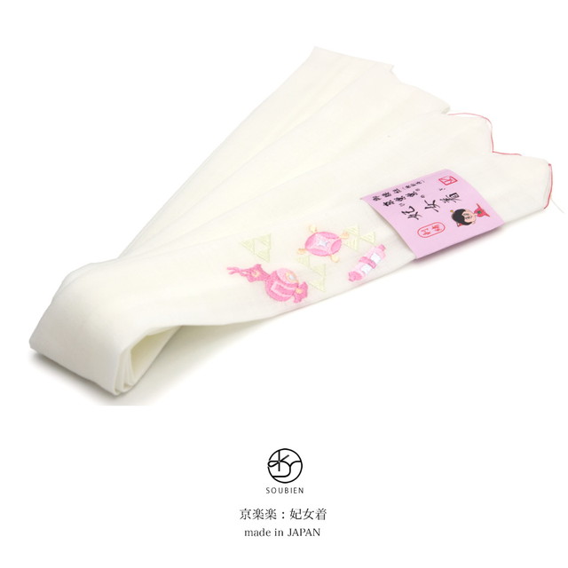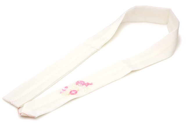 腰紐 白 ホワイト 宝尽くし 刺繍 毛 妃女着 京楽々 着物 モスリン 着付け小物 和装小物 腰ひも 日本製 メール便対応