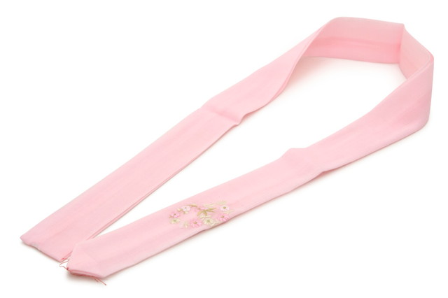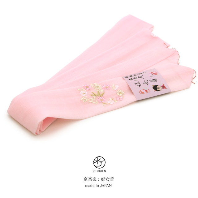 腰紐 ピンク 菊 キク 花 刺繍 毛 妃女着 京楽々 着物 モスリン 着付け小物 和装小物 腰ひも 日本製 メール便対応