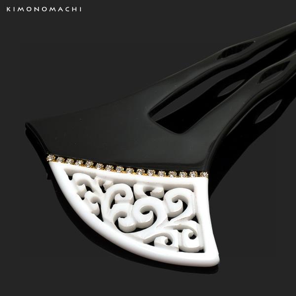【Prices down2】銀杏型 かんざし「黒×白 唐草」 訪問着 付け下げに 礼装かんざし フォーマル セミフォーマル CM615