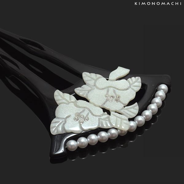 銀杏型 かんざし「黒色 花」 訪問着 付け下げに 礼装かんざし フォーマル セミフォーマル CM-932黒<H>