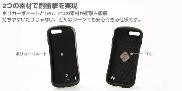 ポリカーボネートとTPU、2つの素材の特徴を生かし、傷や衝撃からiPhoneを保護。