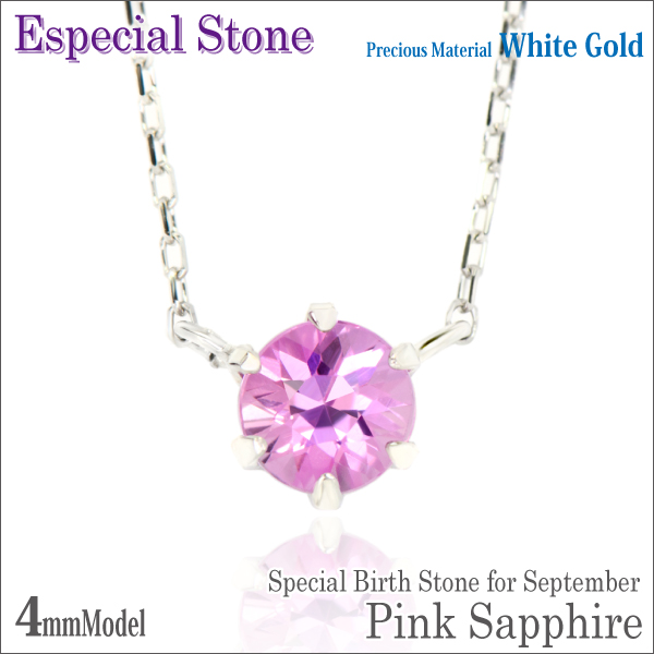 ピンクサファイア ネックレス 送料無料 K10 ホワイトゴールド 4mm ダイヤカット ピンストーン ペンダント チェーン 付 宅配便