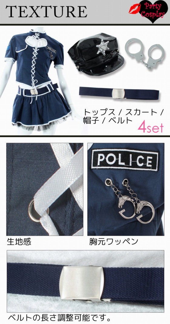 ☆胸元のハート型カッティングから覗くお肌が超セクシーなポリスコスプレセット♪