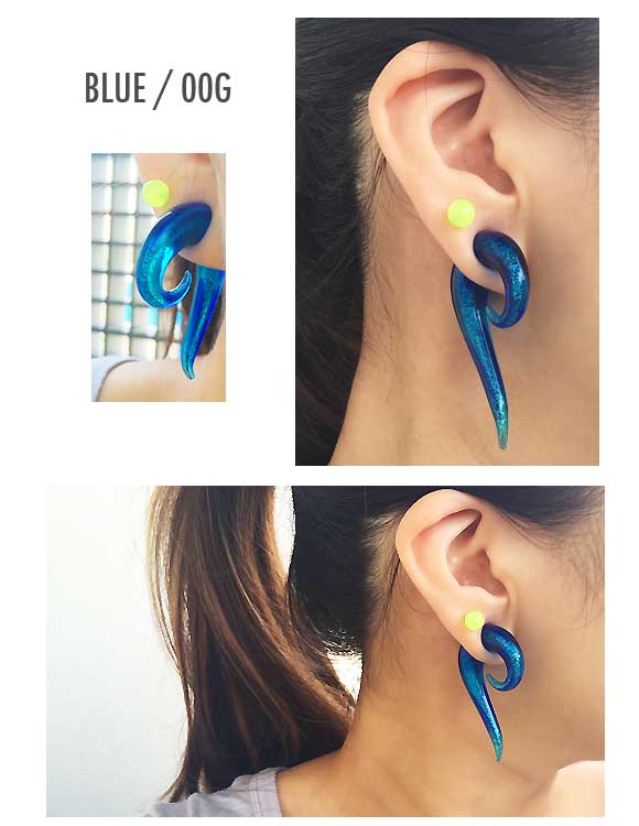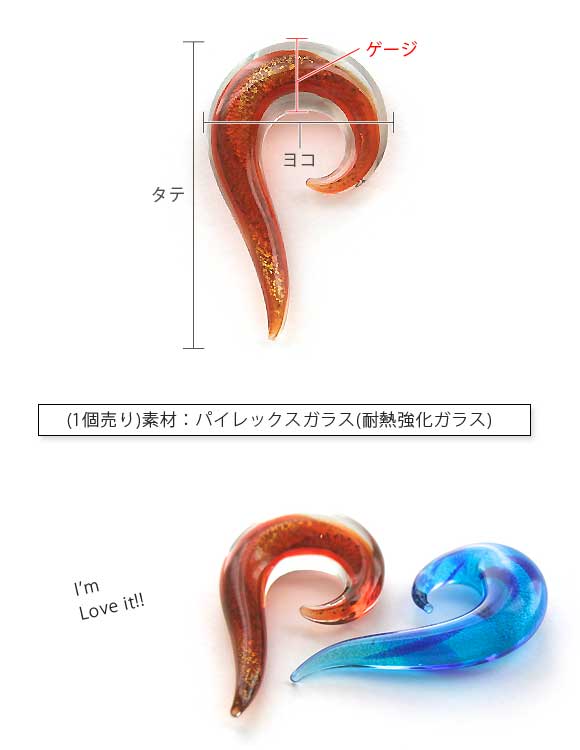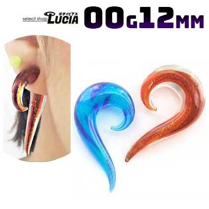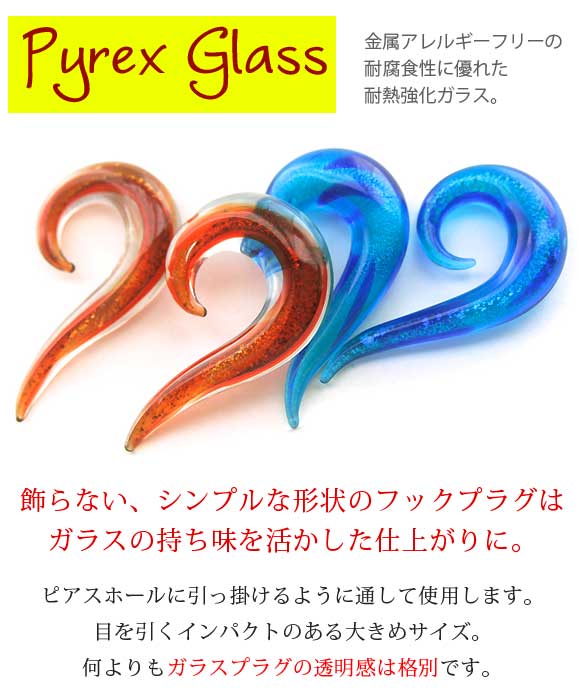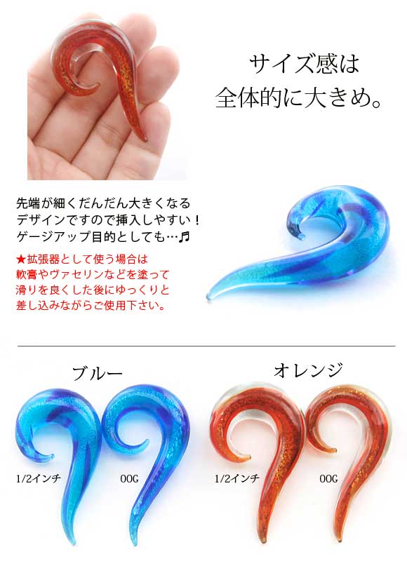 本日P2倍 00G 1/2インチボディピアス フック プラグ パイレックス ガラス プラグ ブルー オレンジ